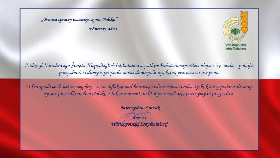 Pamiętajmy jednak, że niepodległość nie jest nam dana raz na zawsze – historia nauczyła nas tego boleśnie. Mimo różnic światopoglądowych i politycznych bądźmy w tym dniu razem! Wszyscy tworzymy jeden naród, dlatego powinniśmy dążyć do porozumienia i współpracy w imię wspólnego celu – pomyślności naszej Ojczyzny, bo jak mówi mądre polskie przysłowie: „Zgoda buduje, niezgoda rujnuje.”
