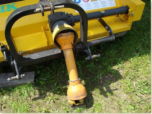 Prawidłowa, kompletna osłona wałka przekazu mocy, posiada łańcuszki, które po zamocowaniu zapobiegają