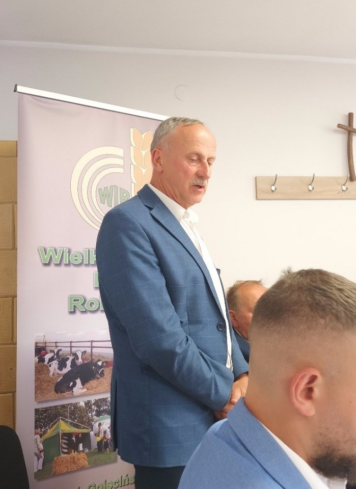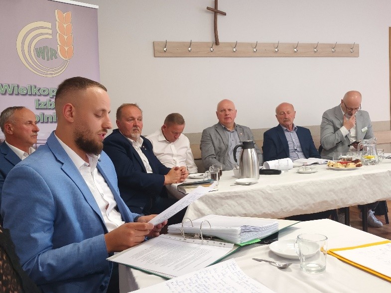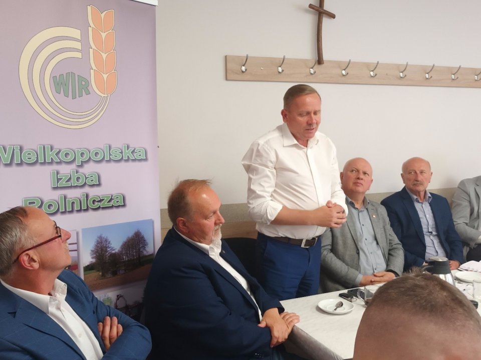 W kolejnej części spotkania poświęconej obecnej sytuacji w rolnictwie Prezes WIR przedstawił informacje z obrad Walnego Zgromadzenia Wielkopolskiej Izby Rolniczej, podczas którego odbyła się odbyła się druga "Wielkopolska Debata Rolnicza" z udziałem przedstawicieli Wielkopolskiej Izby Rolniczej, rolniczych związków zawodowych i branżowych stowarzyszeń rolniczych działających na rzecz wielkopolskiego rolnictwa, dyrektorów instytucji rolniczych oraz parlamentarzystów. Celem debaty zorganizowanej z inicjatywy Wielkopolskiej Izby Rolniczej było przedyskutowanie bieżących problemów rolnictwa oraz wypracowanie wniosków, postulatów i propozycji rozwiązań wobec instytucji rządowych. Podczas debaty poruszono kwestię zagrożenia wynikającego z podpisania umowy MERCOSUR oraz o tym, że w ostatnim dniu polskiej prezydencji w Radzie Unii Europejskiej podjęto decyzję o zakończeniu negocjacji z Ukrainą i podpisaniu umowy, pomimo zapewnienia Czesława Siekierskiego Ministra Rolnictwa i Rozwoju Wsi, iż będzie toczył się dialog i bez naszego udziału nic się nie dokona, gdyż my jako Polska jesteśmy najbardziej narażeni na import produktów rolno-spożywczych z Ukrainy. W swoim wystąpieniu Prezes WIR podkreślił konieczność przetwarzania naszych produktów, gdyż sama produkcja nie przyniesie zysków polskim producentom rolnym. Poruszył też temat działania Izby na rzecz dostępu rolników do nieruchomości pochodzących z Zasobu Własności Rolnej Skarbu Państwa wskazując, że grunty muszą trafić do rolników indywidualnych. Następnie odniósł się do tematu Ośrodków Produkcji Rolniczej wskazując, iż jako wielkopolski samorząd rolniczy jesteśmy przeciwko tworzeniu tych ośrodków. W tym zakresie Barbara Idczak specjalista WIR przybliżyła zebranym działalność Terenowej Rady Społecznej działającej przy Oddziale Terenowym KOWR w Poznaniu oraz sprawy związane z możliwości organizacji przetargów ofertowych, które zdaniem Wielkopolskiej Izby Rolniczej są zdecydowanie korzystniejsze dla rolników.